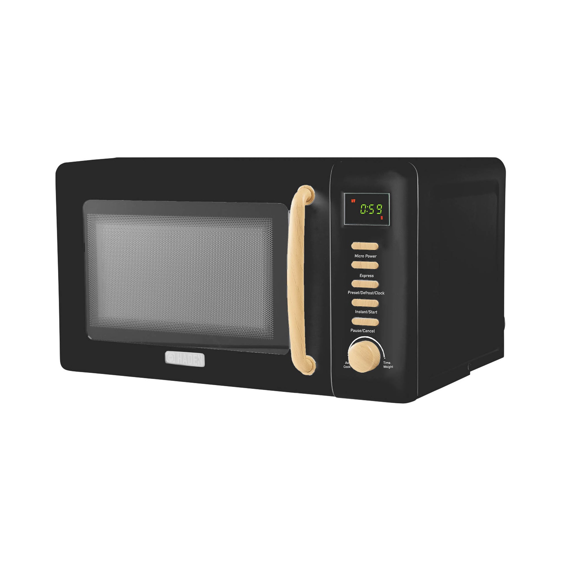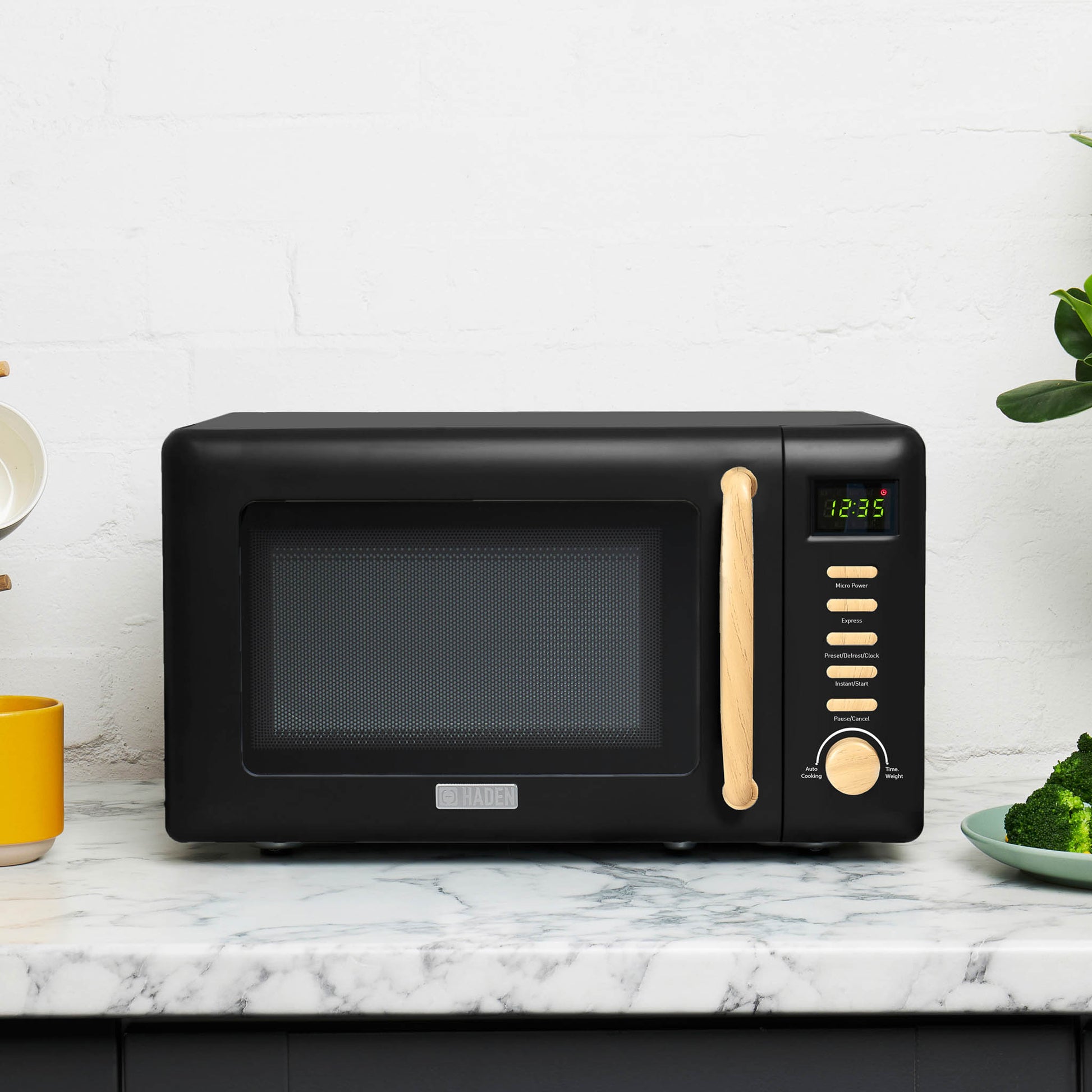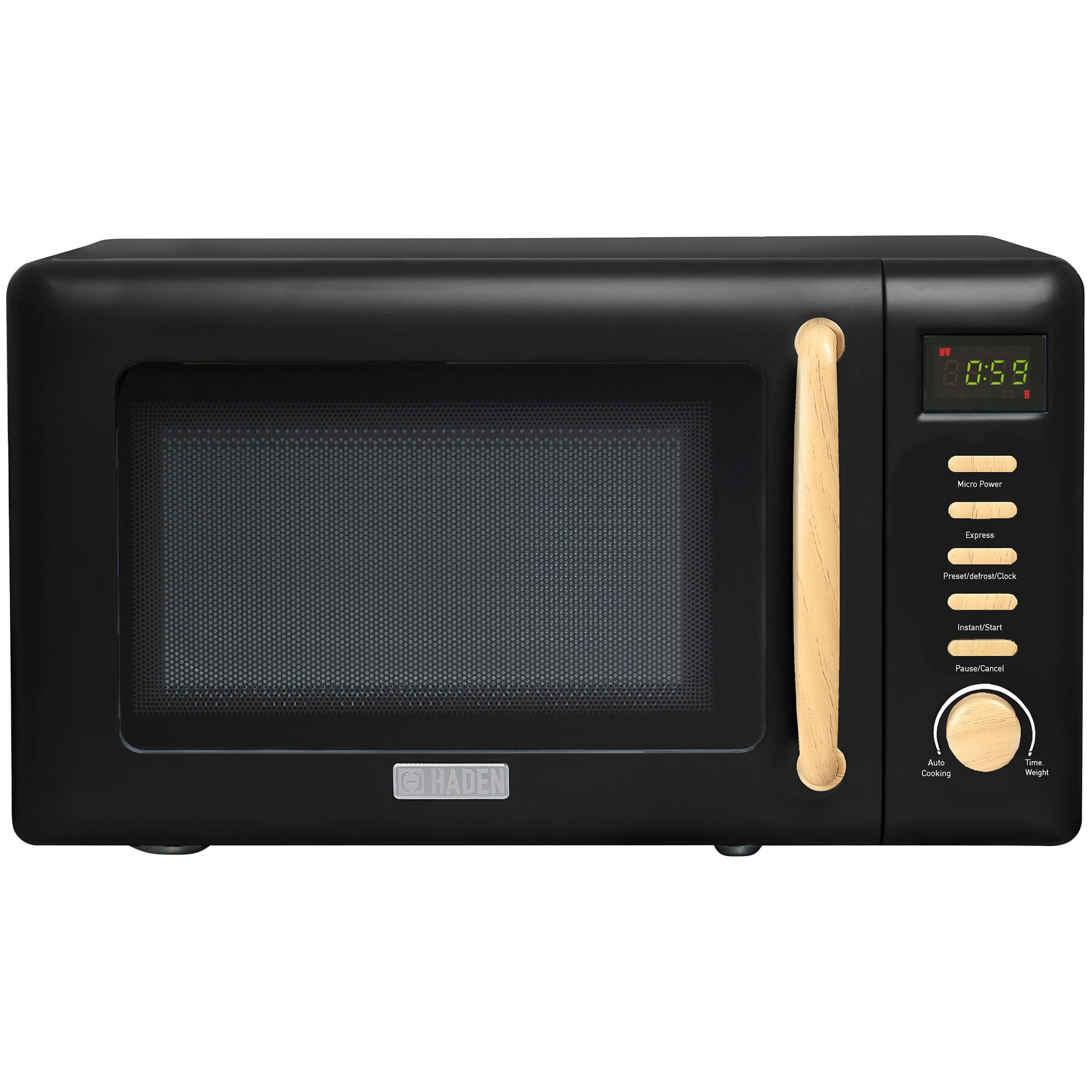 Haden's Heritage microwave upgrades the kitchen essential with appealing curves and a pop of ivory white. Inspired by traditional British homes, Haden of England updates the stalwart appliance with modern hues and features. Use the sleek metallic controls to choose automatic cooking for favorites such as pizza and potatoes, or program your cook time based on the weight of the food. Pair the off-white microwave with matching Haden appliances for a coordinated kitchen.