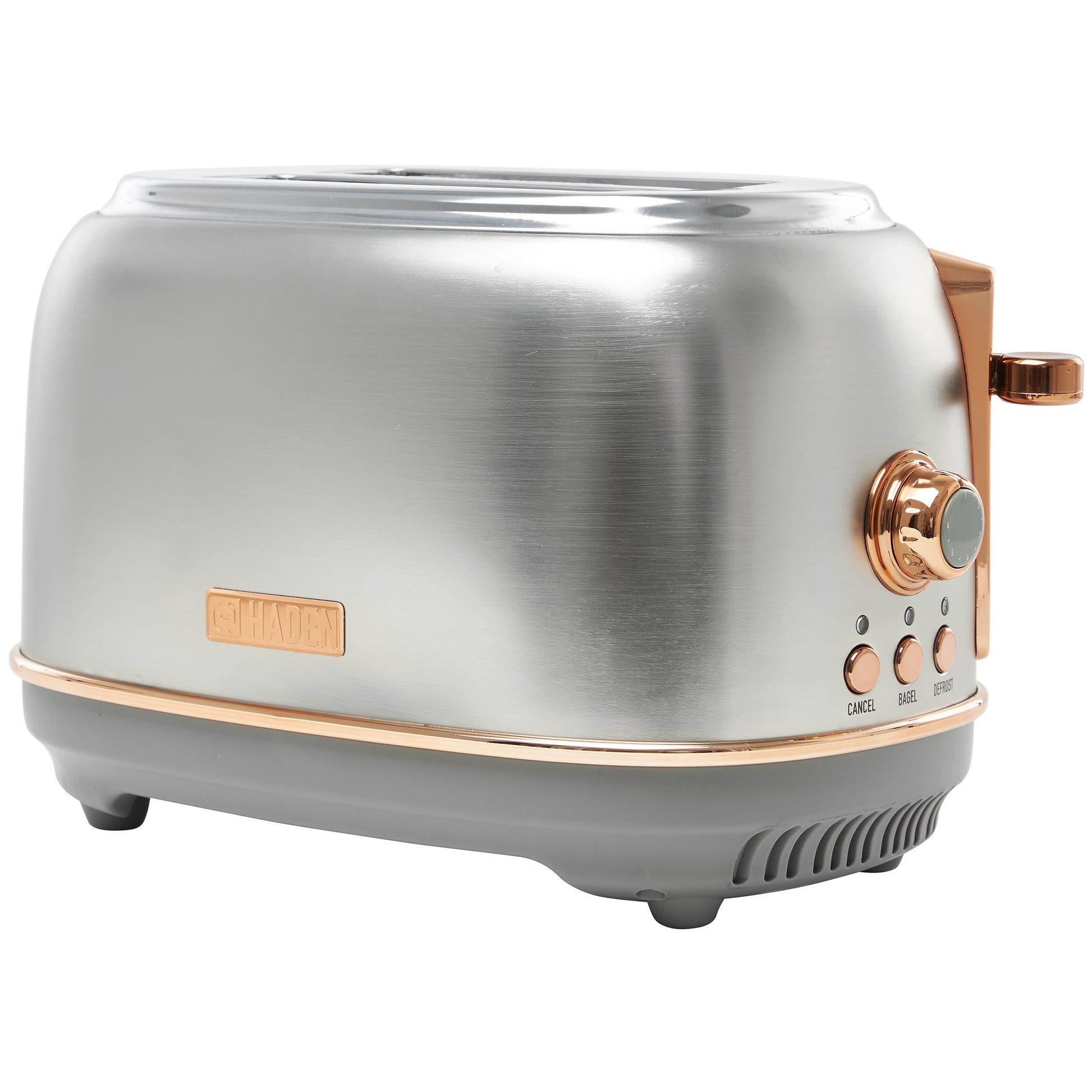 - Features: Two Slice Toaster with Extra Wide Slots for Bagels, Painted Stainless Steel Housing with Haden Badge, Self-Centering Function, and Removable Crumb Tray