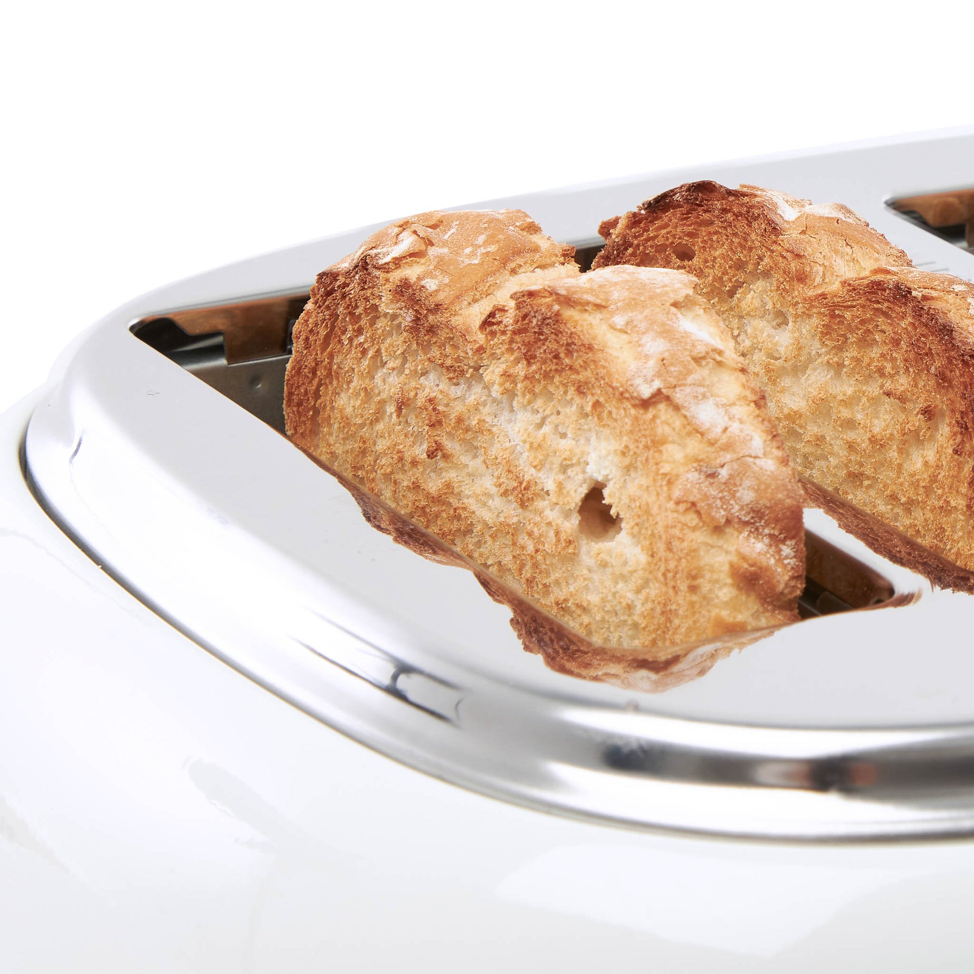 Suitable for the whole family accommodating up to four slices of toast at one time and featuring extra–wide slots, this impressive unit can toast a range of breakfast foods, including thick–cut bread, bagels, buns, crumpets, and more.